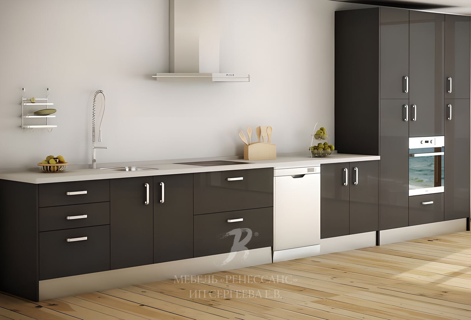 Кухня может быть изготовлена по индивидуальному проекту под Ваши размеры и в соответствии с Вашими стилевыми предпочтениями, цветового решения, функционального наполнения.