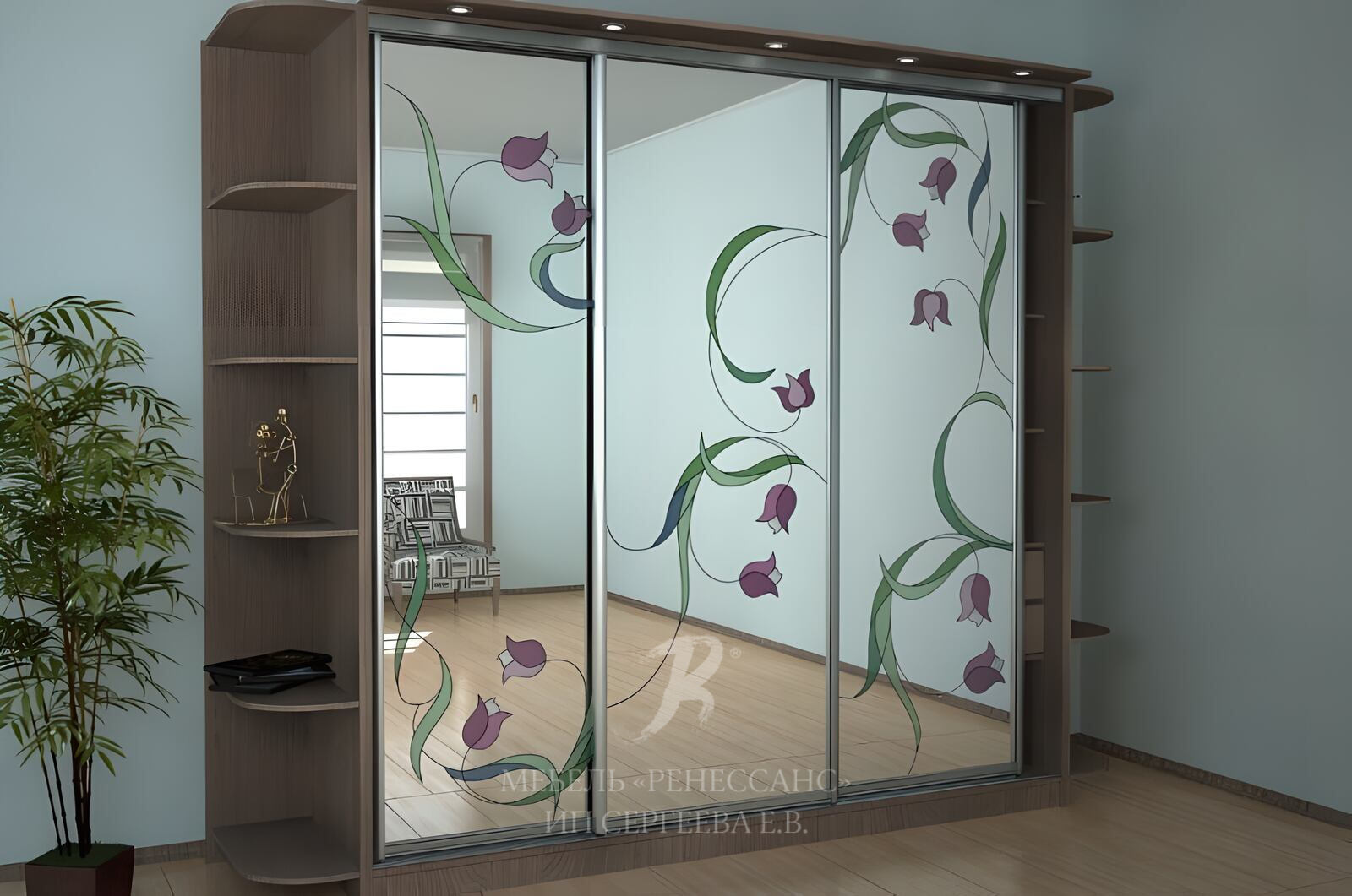 Среди основных преимуществ шкафов-купе с витражными стеклами от компании «Ренессанс» стоит выделить следующие: